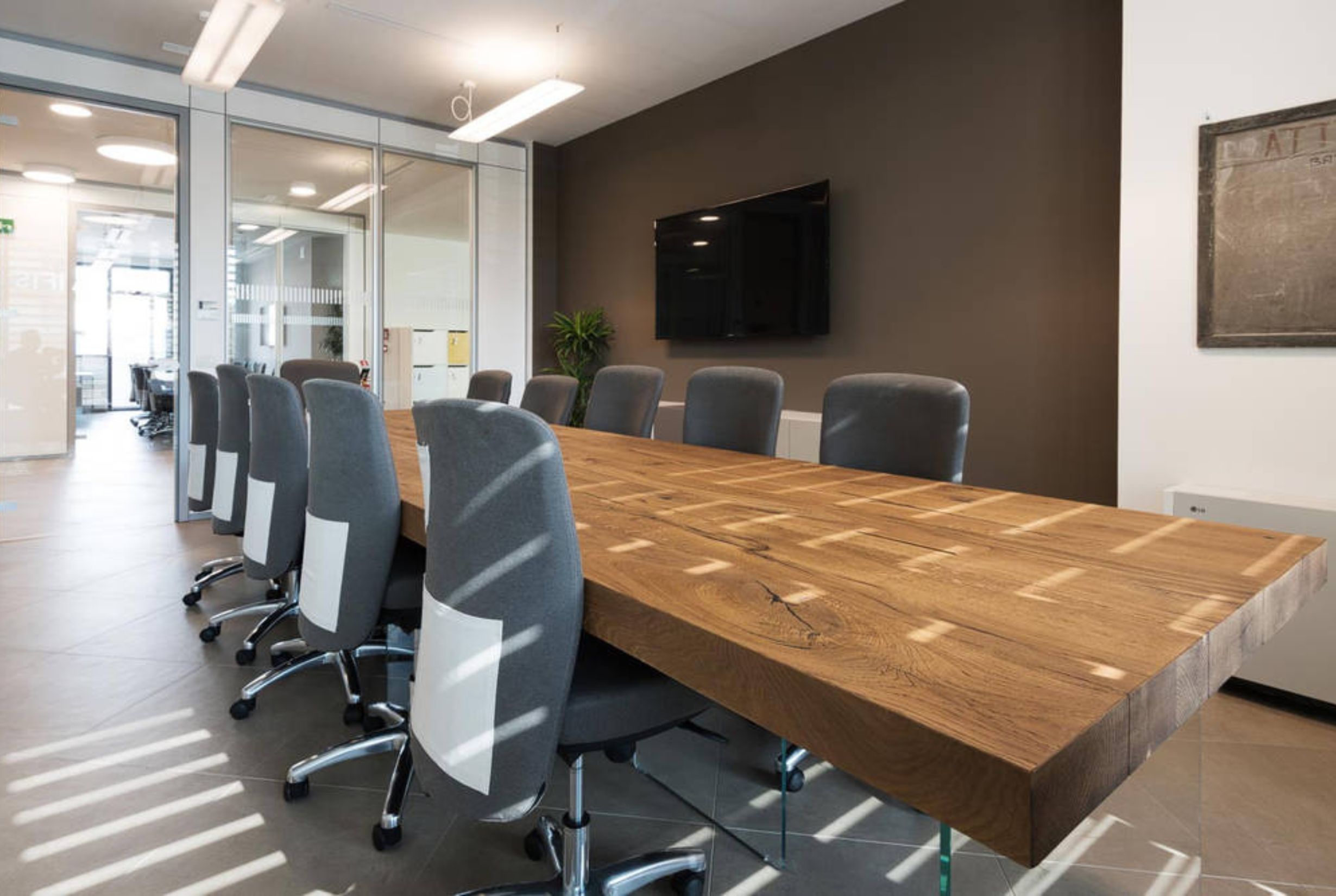 The reorganization of the executive spaces has been developed with particular attention to construction precision, attention to detail and continuity between architectural elements and finishes, ensuring work environments consistent with the standards required by a high-profile corporate headquarters.