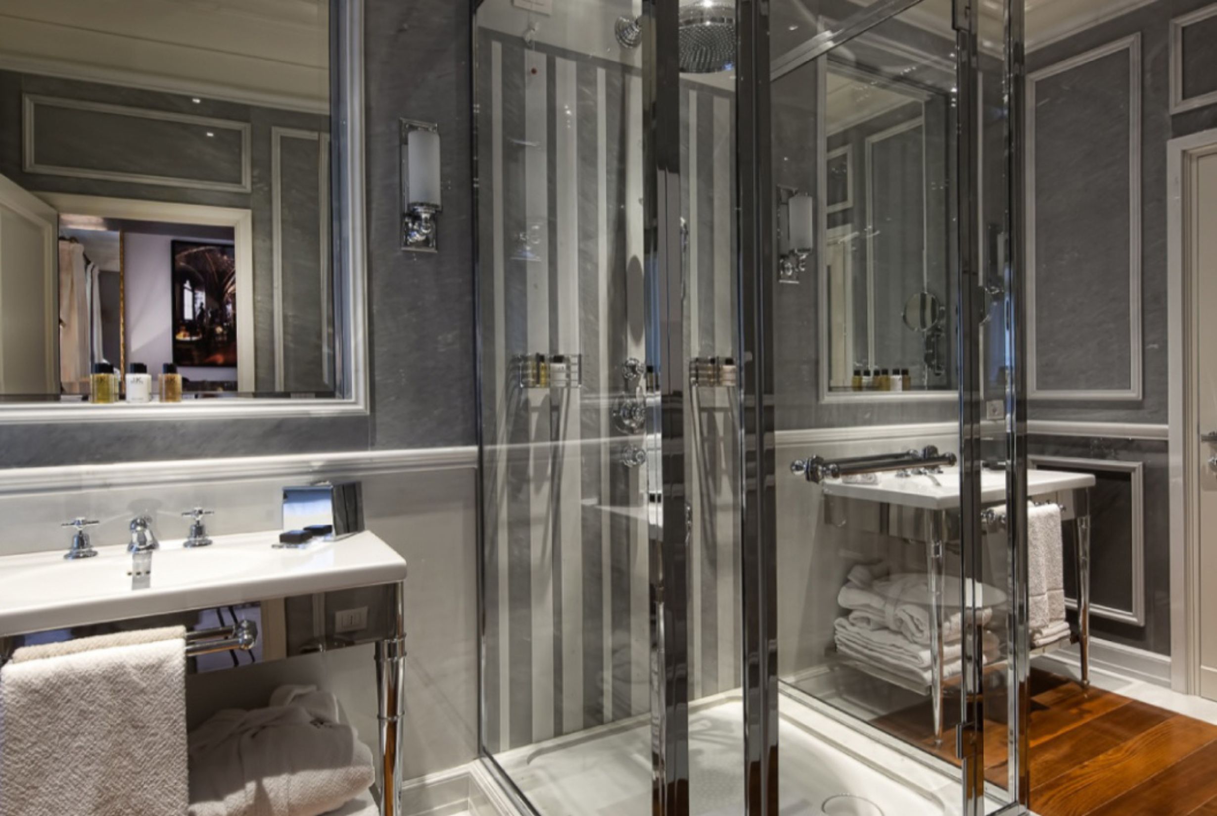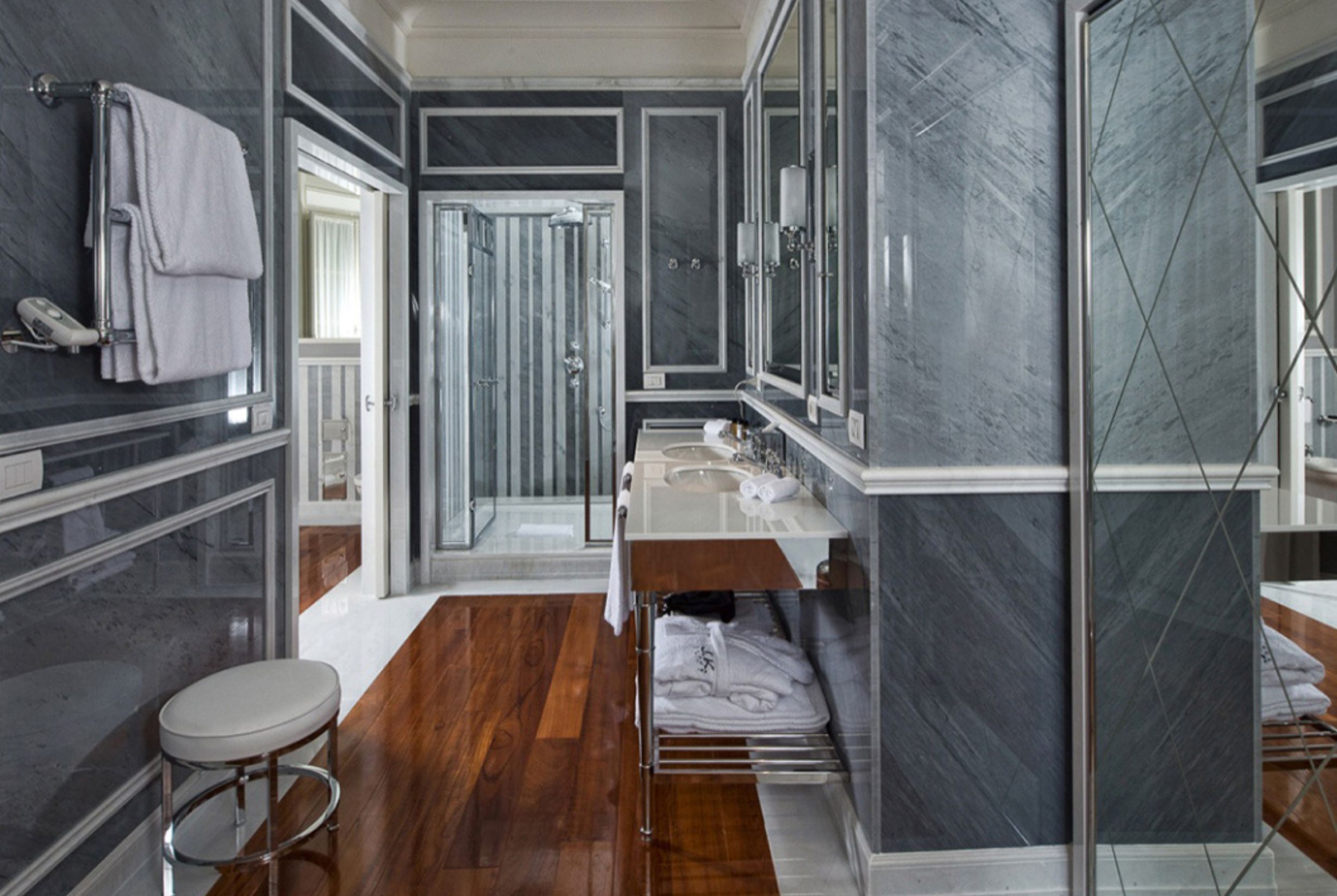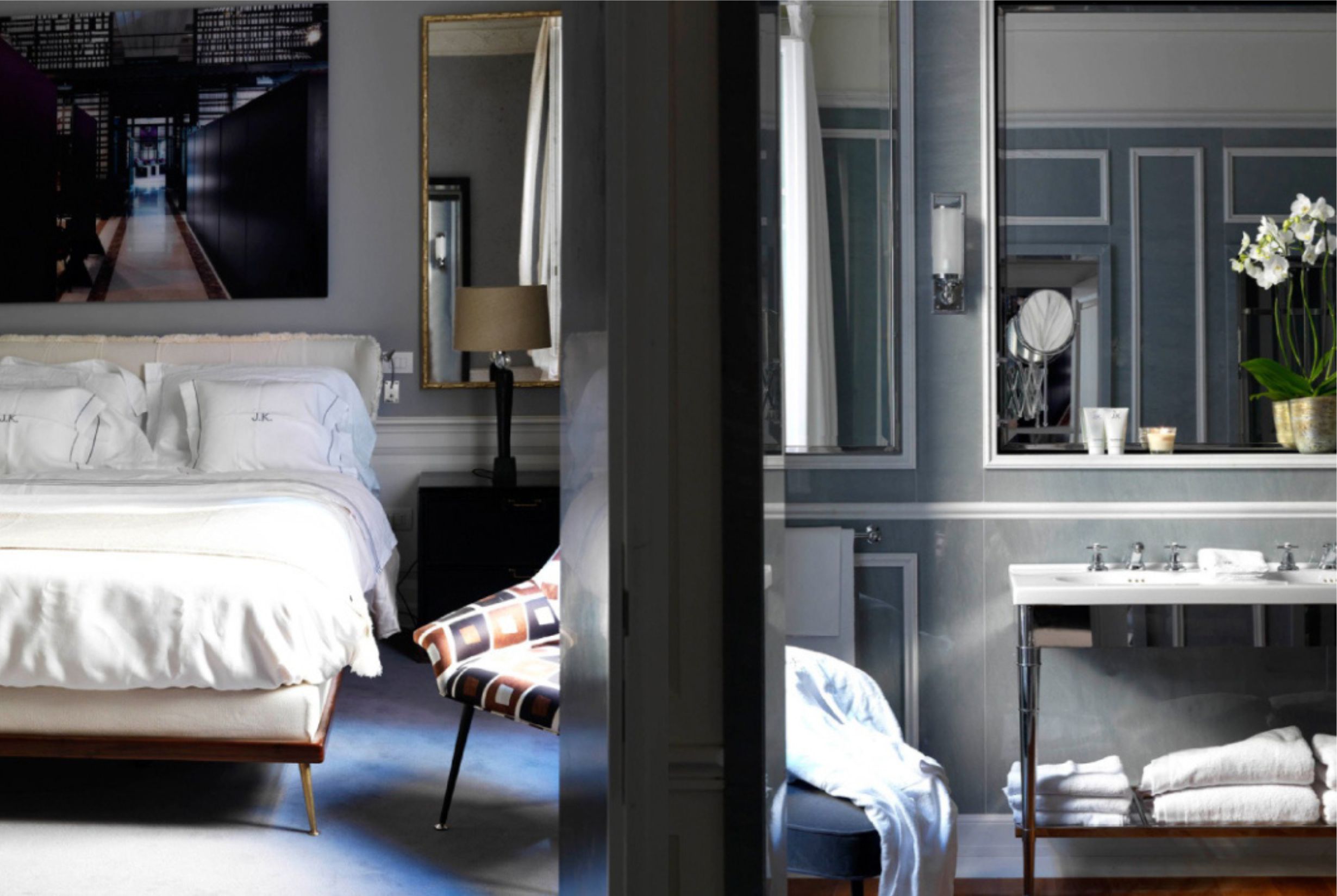 GiulioTanini Group ha contribuito alla realizzazione degli Hotel JK a Roma, Parigi e Capri, intervenendo su bagni e spazi comuni con lavorazioni sartoriali dedicate a una hotellerie di lusso dal carattere distintivo e internazionale.