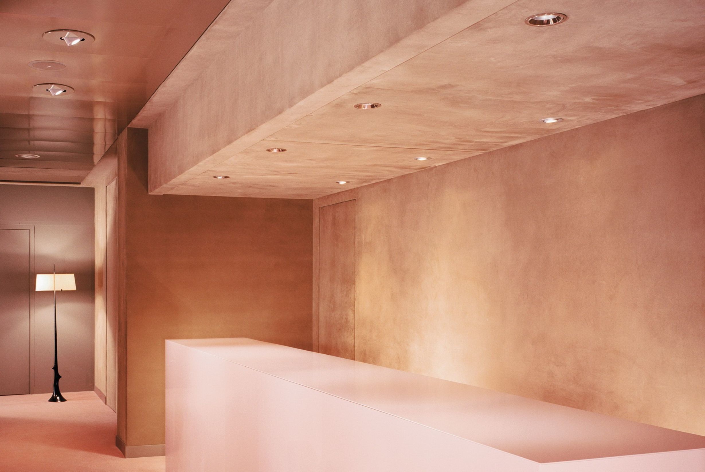 A Parigi, sono stati realizzati pavimenti e rivestimenti in marmo Perlino Rosa, selezionato per valorizzare l’identità elegante e sofisticata del brand.